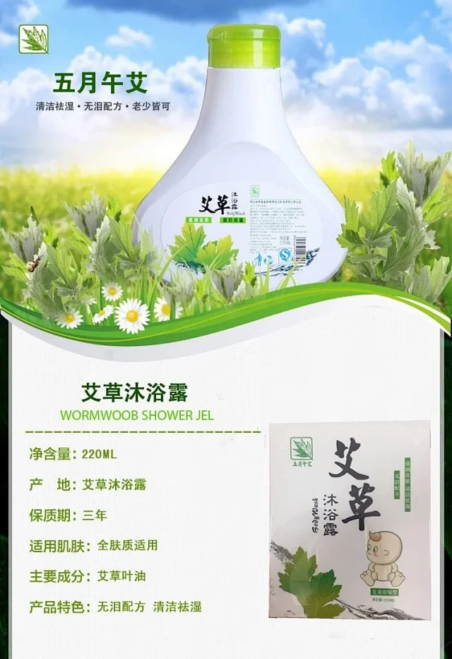 艾草儿童淋浴露220ml 天然蕲艾精油产妇清洁保湿抑菌止痒天然植物新生婴儿宝宝沐浴露无刺激温和除螨美白防痱防蚊杀菌驱蚊