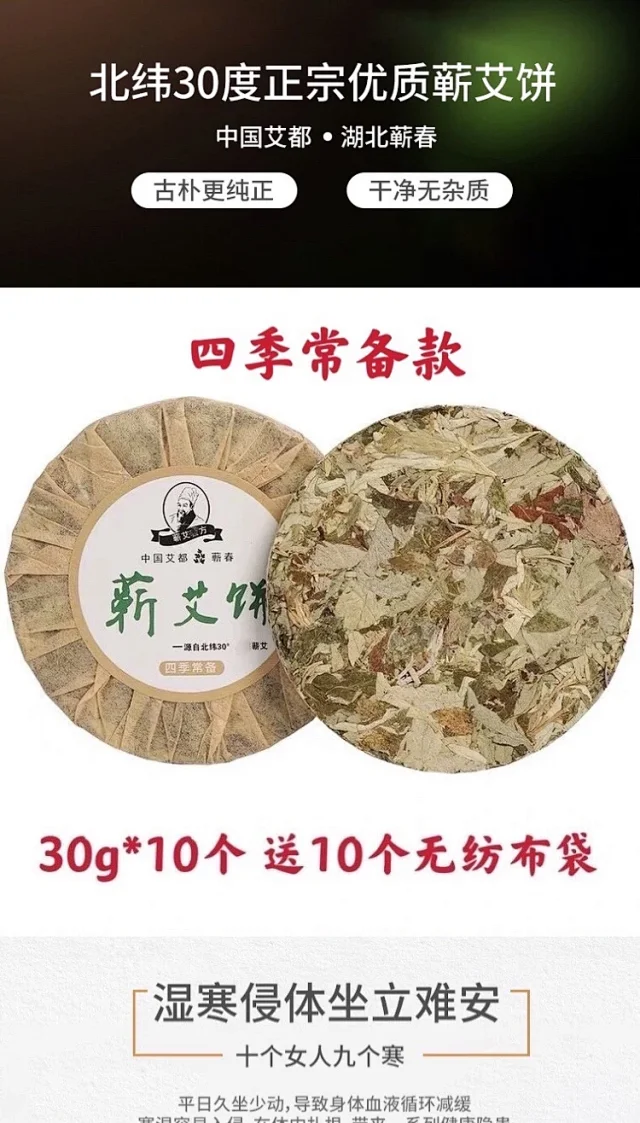 蕲艾饼【10个装】艾饼家用圆形泡脚去湿气婴儿泡澡陈年蕲艾野生艾叶宝宝药浴艾草饼李时珍蕲春排毒女性祛湿宫寒暖宫