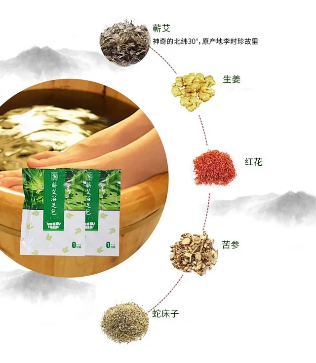 蕲艾足浴包【10包/盒】艾草艾叶藏红花老姜泡澡泡脚足浴粉男女士通用驱寒散湿正品蕲艾绒泡脚包泡澡粉月子产妇宝宝沐浴调理宫寒