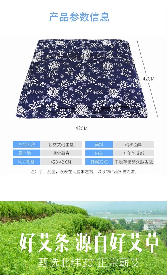 蕲艾绒加热坐垫 发热款艾灸坐垫艾灸臀部垫子蒲团家用女性艾草叶枕头无烟蕲艾绒坐垫艾叶午睡护颈椎修复艾枕家用妇科宫寒痛经垫