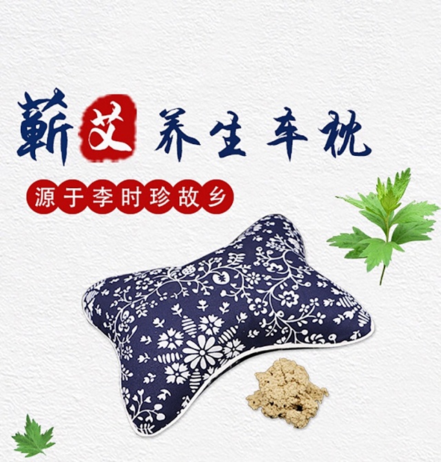 蕲艾绒养生车枕 蕲艾车枕 车载养生保健按摩枕 舒缓颈部车用艾绒棉麻颈椎枕
